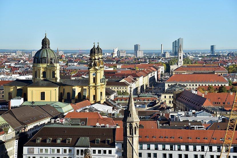 鵝黃色巴洛克樣式的鐵阿提納教堂(Google Map位置圖)主宰了慕尼黑天際線,是為了紀念當時的巴伐利亞統治者Ferdinand Maria喜獲麟兒而建造的,工期是1663 – 1690年,不過Ferdinand Maria在1679年就過世了。