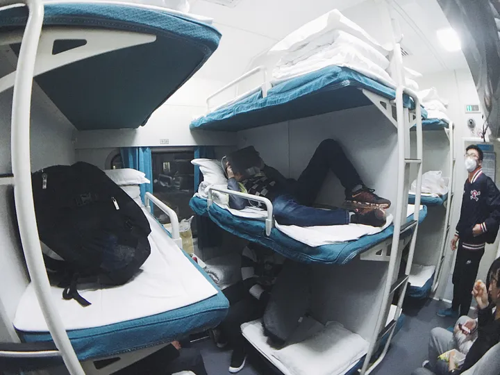 白天時,下鋪的位子時常會變成其他乘客們的遊樂場,有一次我抽到下舖床位,清晨我還在迷濛之中突然就有個大嬸豪不客氣坐在我腳上。