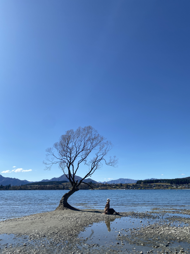 到了Wanaka小鎮 坐在這個季節沒有湖水包圍住的孤獨樹旁