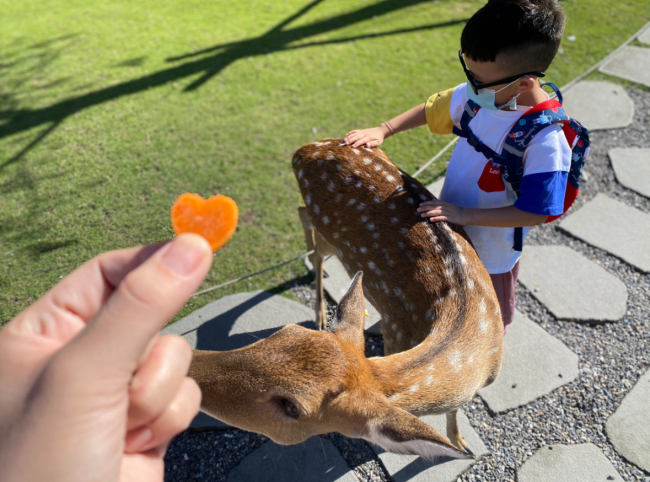 最吸引我們的是可以近距離餵食梅花鹿