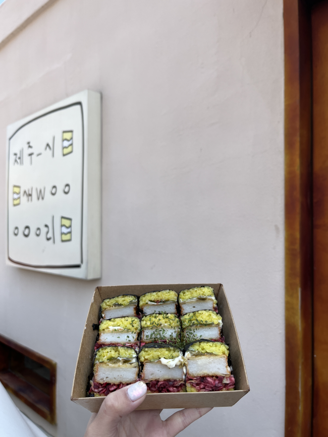 飯捲是韓國道地的小吃,濟州島把海鮮元素加進飯捲裡
