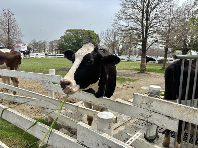 園區非常乾淨,可以近距離餵牛牛吃草~
