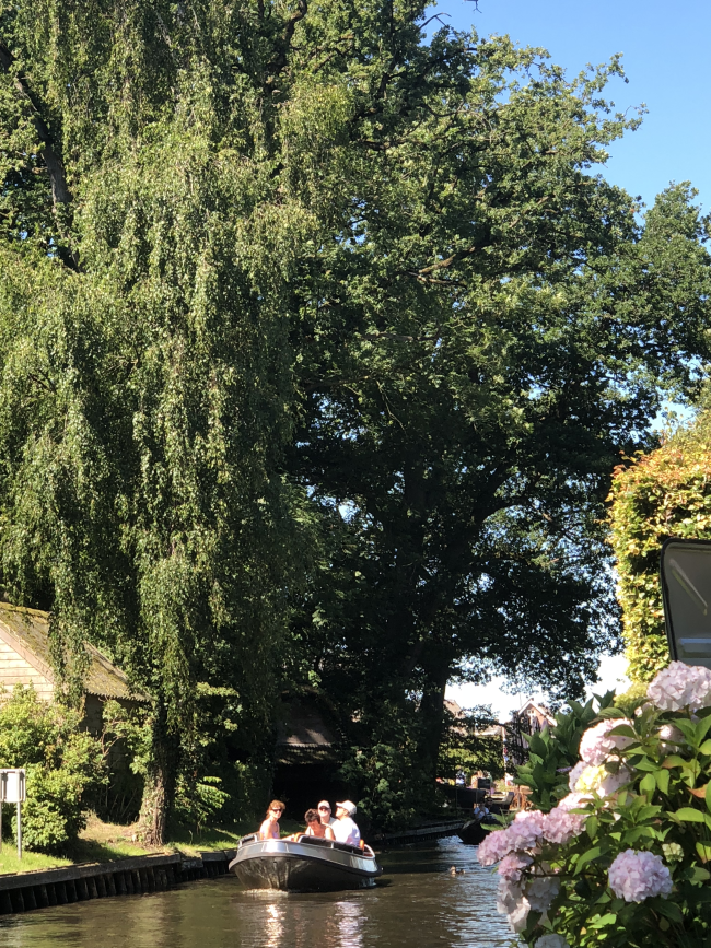 荷蘭羊角村如童話仙境,運河蜿蜒、蘆葦環繞,綠意中的茅草屋倒映水面。