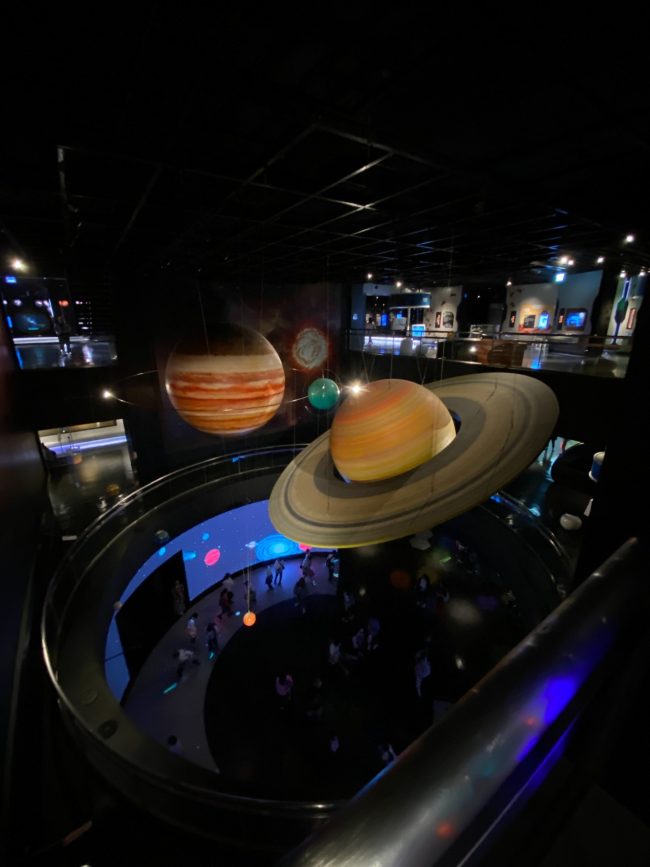抬頭望見懸掛在空中的巨大土星、木星與其他行星模型, 彷彿自己真的站在銀河系的邊緣,靜靜地仰望著宇宙的深處。