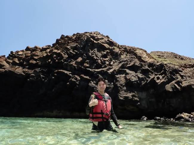 照片中,是今年五月我去澎湖的七美島上浮潛的時候所拍的照片