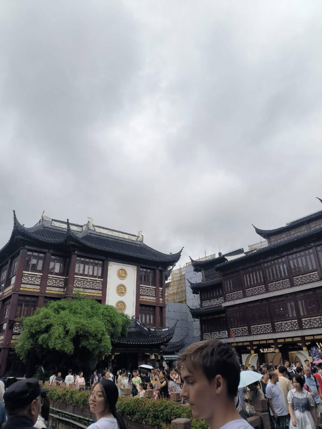 站在豫园商城的一隅,仰望着飞檐翘角的古建筑,在阴沉的天空下别有一番韵味。乌云压顶却未能驱散游客的热情,古色古香的红墙黑瓦与现代人群形成强烈对比,仿佛时间在这里短暂交汇。 建筑外墙上金字“和顺兴”显得尤为醒目,流露出传统商业文化的痕迹。楼宇之间是熙攘的人流,有拿着自拍杆记录旅程的游客,也有安静观景、感受气氛的行人。沿着小桥流水望去,绿意盎然的树木与江南园林的意境交织,给这座城市多添了一分温柔。 空气中混杂着点心铺飘出的香味和人声鼎沸的热闹,仿佛让人一秒回到旧时上海的热市集。传统与现代、东方与西方,在这方寸之间交错融合。 这一刻,不只是一次旅行的打卡,而是亲身体会这座城市文化脉络的一次触碰。