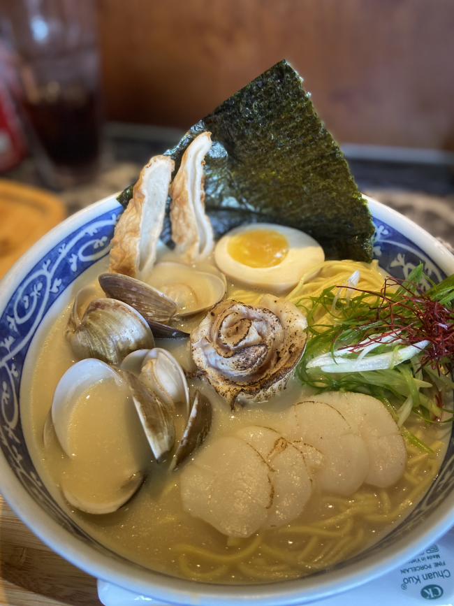 三鮮漁夫盛和麵(基隆限定) 這是位於基隆正濱魚漁港彩色屋的ㄧ間餐廳,定置漁場三代目-THE FISHERY,標榜新鮮魚貨製成的美味料理,主餐的湯底是用膠原魚白湯變化出料理沾麵,泡飯或湯麵,像這一碗湯麵就充滿著濃濃海味,搭配基隆特有吉古拉,成為在地的排隊名店,現場等侯的人數不少,為嚐鮮,真的請耐心等侯 價格NT450