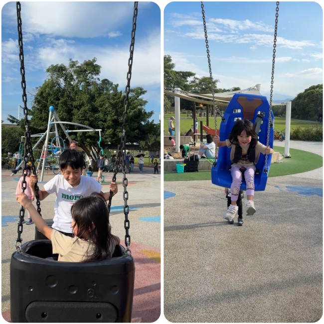 浮洲兒童遊戲場 ✨ 多款鞦韆(鳥巢、雙人、圓盤、包覆式),大小孩都能找到樂趣 ✨ 青少年專屬彈跳床+成人體健設施,親子同樂、全齡共享 🚲 這裡緊鄰河濱自行車道,我們都是從光復橋下騎腳踏車過去!!可以玩一個下午! 📍 地點:新北市板橋區大漢溪右岸(浮洲橋下河濱公園)
